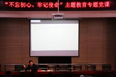 赵增武教授从开展主题教育的总要求、根本任务和具体目标入手,结合个人近期在浦东干部公司的学习经历,从“共产党员的信仰、周恩来总理的《我的修养要则》、‘中国之制’看‘中国之治’——党的十九届四中全会决定”三个部分进行分享与阐释——认真开展好“不忘初心、牢记使命”主题教育的重要性。