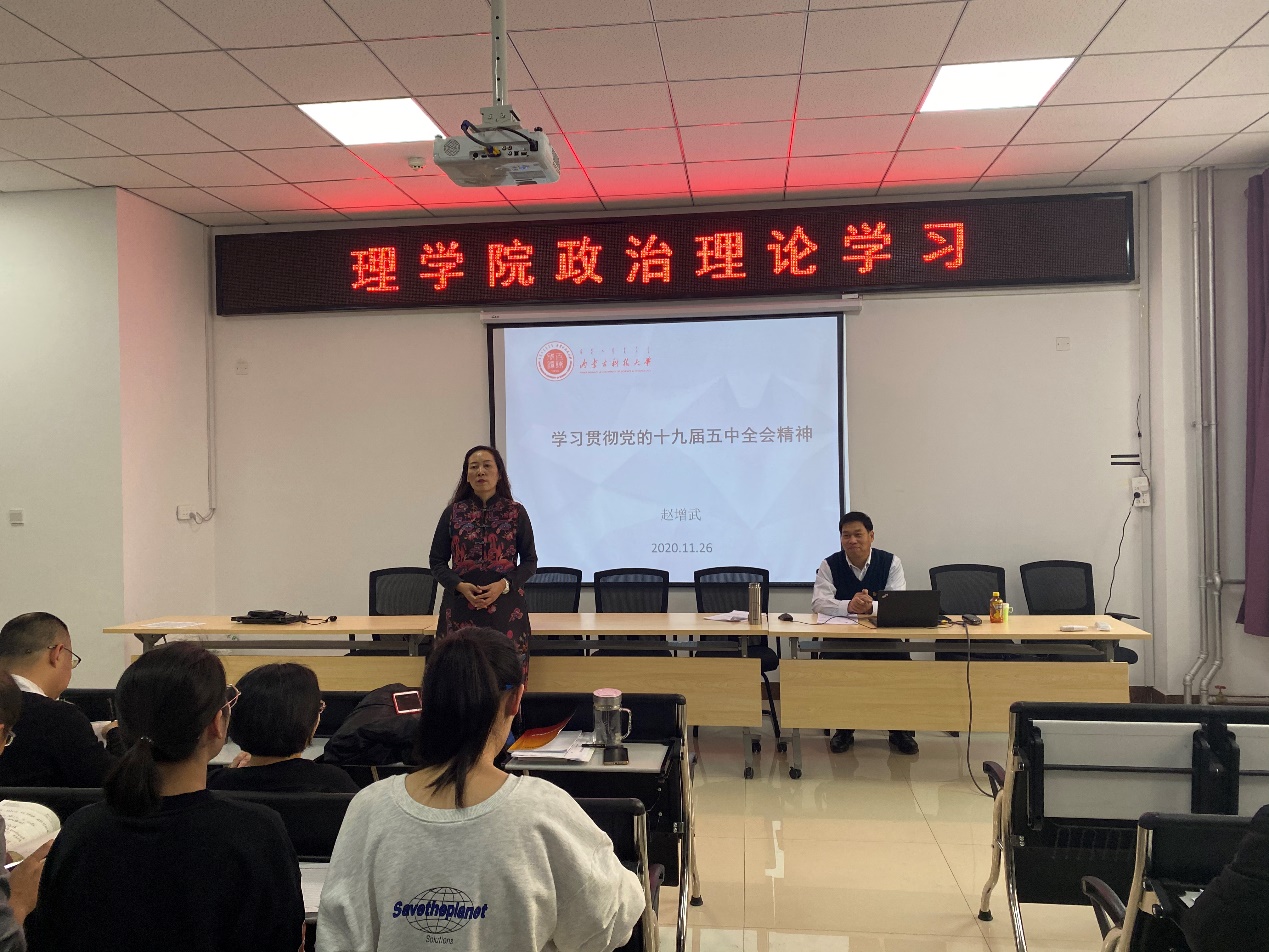 11月26日下午2:30,在明德楼E205会议室,mobile28365正规网址党委委员、副董事长赵增武教授为mobile28365全体教师和员工党员作党的十九届五中全会精神宣讲报告。