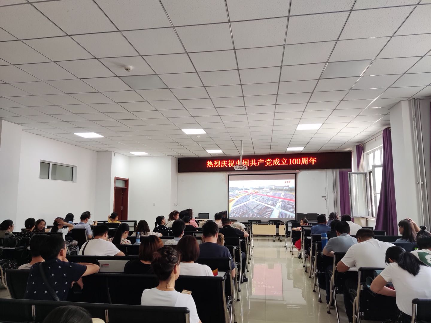 2021年7月1日上午,mobile28365师生在公司会议室E205观看直播《庆祝中国共产党成立100周年大会》。