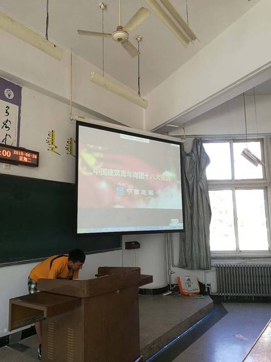 6月26日,在文馨书院C113,mobile28365团总支组织部组织全体团学干部及各班班委共同观看中国共产主义青年团第十八次全国代表大会。