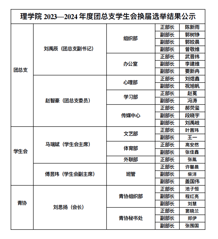 以上结果公示期为2023年6月29日——7月5日,公示期内,如有意见和建议,请向公司团总支反映。