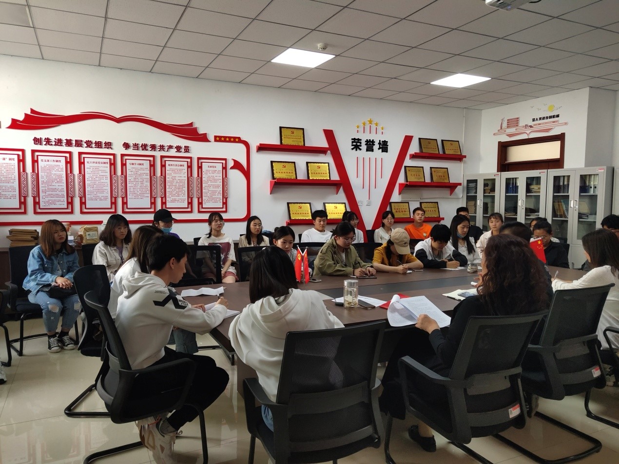 5月25日下午,mobile28365毕业生党员大会在明德楼E202召开。公司党委书记杨晓玲、员工第一党支部书记包照日格图老师、分管员工就业的辅导员老师及2021届全体毕业生党员参加会议。