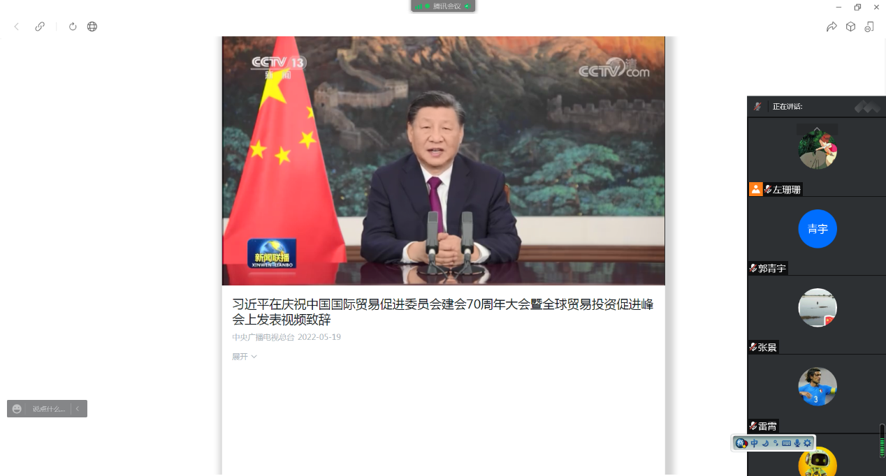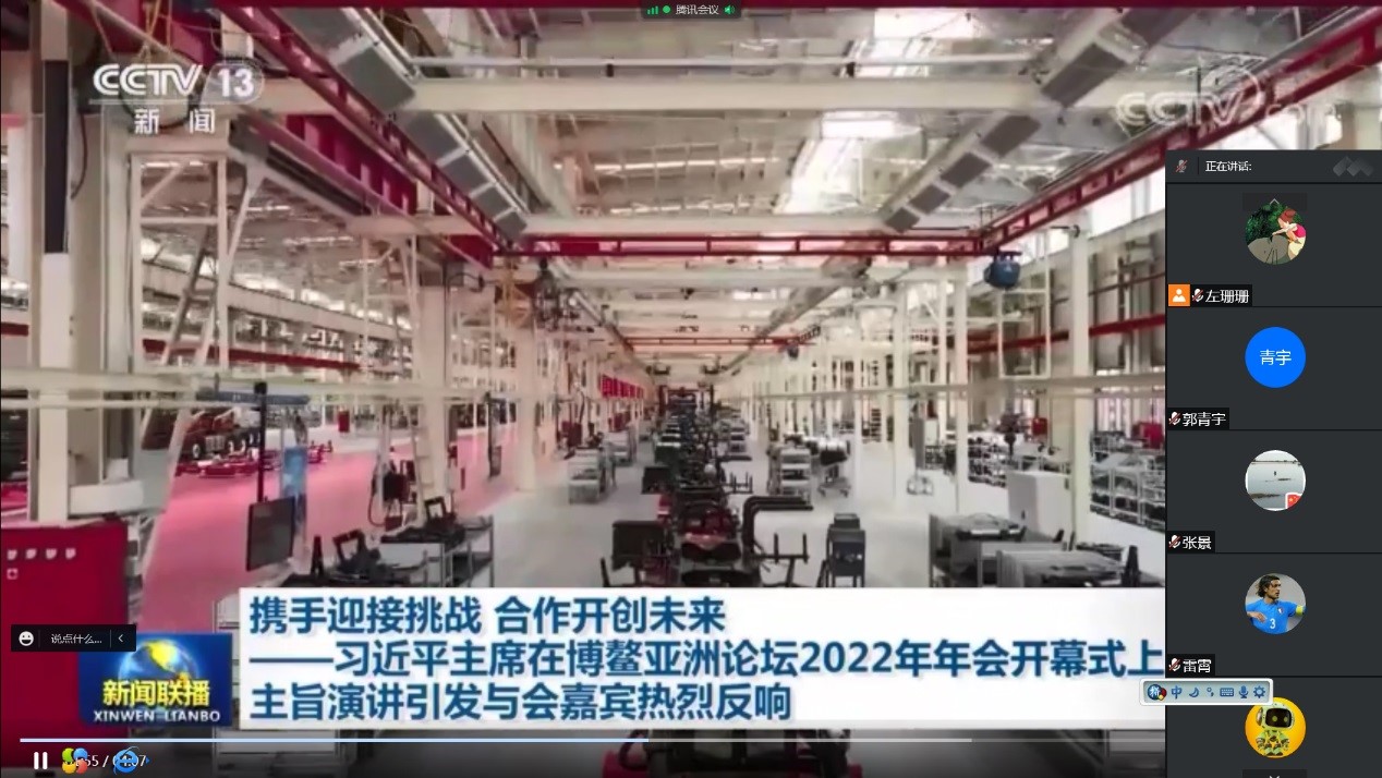 会上,通过视频的形式学习了习近平总书记在庆祝中国国际贸易促进委员会建会70周年大会暨全球贸易投资促进峰会上发表的视频、习近平总书记在《求是》杂志发表的重要文章《正确认识和把握我国发展重大理论和实践问题》、习近平总书记在博鳌亚洲论坛2022年年会开幕式上的主旨演讲等多项内容,通过学习我们深刻认识到习近平总书记对我国扩大高水平开放的决心,系列讲话精神充分体现了中国维护多边主义、积极开展国际合作的信念。