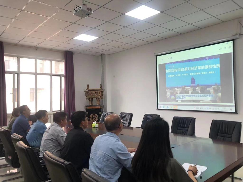 会议通过视频的形式观看了“习近平新时代中国特色社会主义经济思想研讨会”,通过领学的形式学习了《习近平经济思想学习纲要》第一部分:加强党对经济工作的全面领导。习近平经济思想集中体现了以习近平同志为核心的党中央对我国经济发展面临形势挑战的敏锐洞察、深邃思考和科学判断,是我们当前及今后各项工作的根本遵循。