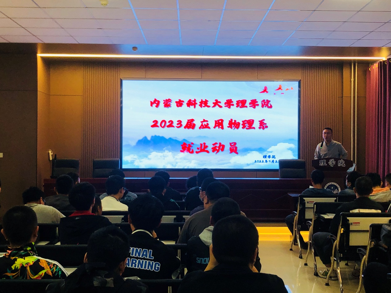 为进一步增强毕业生就业意识,引导毕业生了解就业形势,树立正确的就业观和择业观,公司于9月22日晚间召开了2023届应用物理学毕业生就业动员大会。会议由应用物理学专业系部主任贺帅老师主持,mobile28365党委副书记、副经理罗宁、全体毕业班班主任、2018届毕业班班主任、辅导员、2023届全体物理专业毕业生参会。