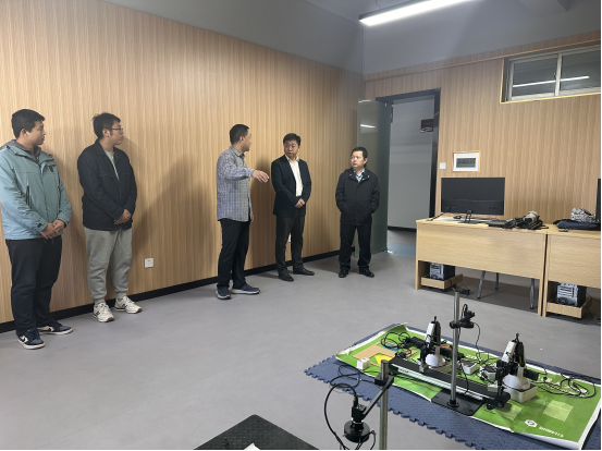 随后,两院一行参观了延安大学西安创新公司部分实验室、AI场景综合应用中心及学科竞赛基地,详细了解四足机器人、人工智能无人车和先进计算机视觉等赛项的培训组织和竞赛情况,并与基地培训教师就信息类竞赛设备选型、人才选拔、方案制定进行了交流。