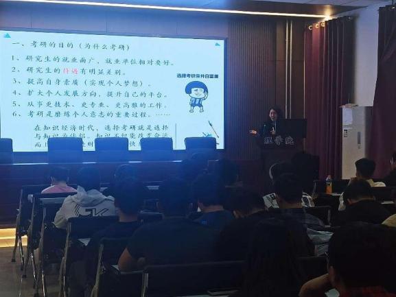 报告会上,牛金艳通过以考研原因、当前的就业情况等内容,突出考研的重要性,让莘莘学子认识到自己所需要面临的问题。进一步向同学们展示考研的基本情况,讲述了择校、择师、考研的准备等等内容,为同学们的考研路理清了方向。贺帅为同学们介绍了2024届的考研情况,同时介绍了mobile28365正规网址物理学科的基本情况,让同学们更加了解了自己的学科,鼓励同学们积极备考本校。武淑琴以职业规划为依托,给同学们描绘了未来的发展道路,殷切的嘱托大家珍惜时光,积极备考积极就业。最后,2024届优秀员工刘洋、李赫、葛洪达、蒋迅等同学分享了自己的备考经验,传授大家备考的方法及备考资料,鼓励学弟学妹们坚持不懈,以自身亲身经历,生动形象描绘坚持的重要性。