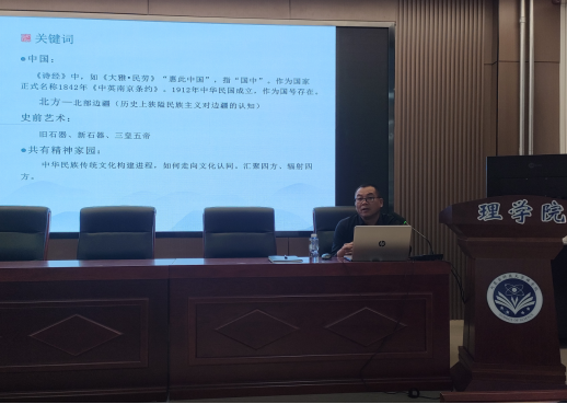 李书记与同学们一同梳理了中国北方史前艺术生成及发展脉络,通过史前图像艺术解析中华民族优秀传统文化体系的早期共构进程。从《诗经》中讲解“中国”一词的起源,通过旧石器、新石器、三皇五帝讲解史前艺术,最后以共有精神家园为题,为同学们讲了中华民族传统文化构建进程,增强了同学们对民族文化的认同感。