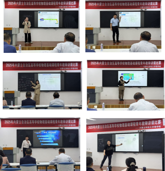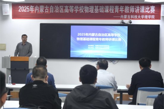 5月17日,2025年内蒙古自治区高等公司物理基础课程青年教师讲课比赛在mobile28365举行,来自全区9所高校的19位教师参加比赛,mobile2836545岁以下青年教工观摩比赛。