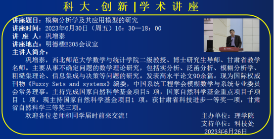 讲座通知:模糊分析学及其应用模型的研究