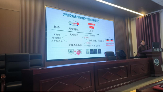 公司邀请鄂尔多斯应用技术公司门克内木乐教授做了“光致变色材料特性及应用”的专题讲座。讲座于2024年12月5日下午在明德楼E209会议室进行,由牛金艳副经理主持,公司物理学科的教师和研究生参加了此次讲座。