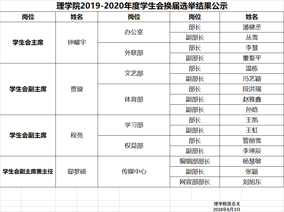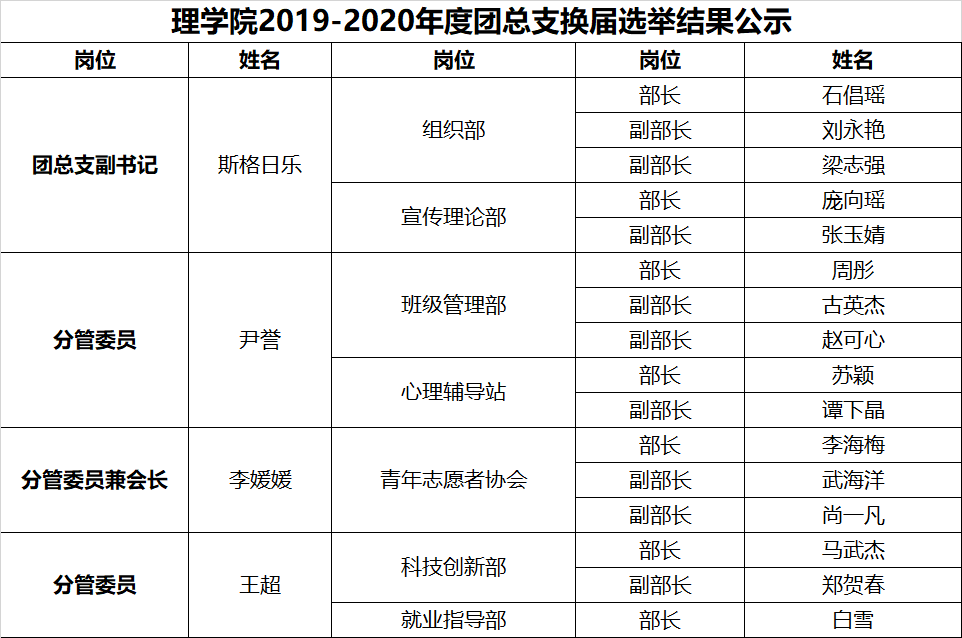以上结果公示期为2019年6月3日——6月9日,公示期内,如有意见和建议,请向公司团总支反映,地址:秋实楼C509,联系电话:5952267 mobile28365团总支