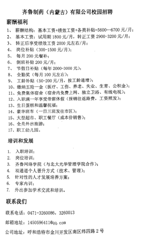 齐鲁制药(内蒙古)有限公司始建于2009年,是中国大型现代化生物制药企业。公司地处蒙元文化发祥地——呼和浩特市,为国家科技兴贸创新基地(生物)内蒙古呼和浩特经济技术开发区金川工业园区核心企业。